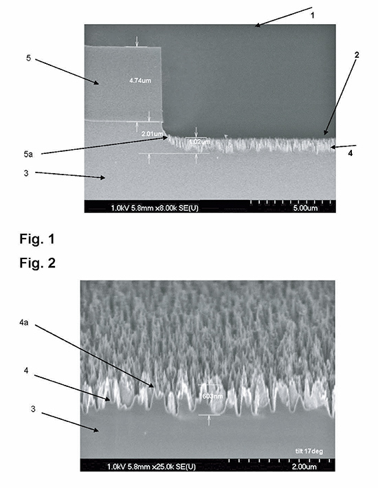 By means of an RIE etch process for silicon (3), a pin-type structure (4,4a) without crystal defects is formed with high aspect ratio and with nano dimensions on the surface of silicon wafers without any additional patterning measures (e-beam, interferencelithography, and the like) by selecting the gas components of the etch plasma in self-organization. Abroadband antireflective behavior is obtained that may be applicable in many fields.